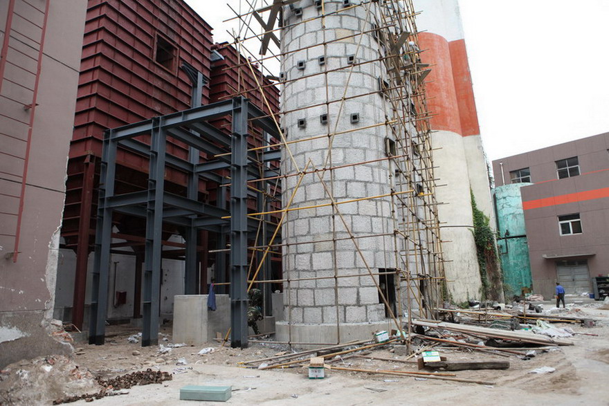玉涧堡热源站锅炉脱硫脱硝除尘改造工程总投资8628万元,项目设计、招标、采购等前期工作已完成,目前已进入实施阶段。工程按照国家最新环保要求设计、施工,主要内容是进行锅炉的除尘、脱硫、脱硝改造,使烟气排放达标。程卫夏:“玉涧堡的热源改造主要分:一、除尘部分。除尘部分用效率达到99.9%以上的布袋除尘器代替传统的除尘器,这样可以保证烟尘的减排量增加200余吨。二、脱硫部分。采用氧化镁吸收法,洗手烟气中的二氧化硫和三氧化硫,使二氧化硫和三氧化硫的减排量能达到300余吨;三、脱硝部分。脱硝用尿素还原法,将烟气中的氮氧化合物还原成氮气排放,这样氮氧化合物的减排量可以达到200余吨。