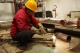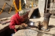渭工路东段 69#院附近的热力井旁焊花飞溅,焊工许红安正在焊接法兰。据了解,该热力井主要负责宝商家属院及周边区域6000余m 2 的供热任务,调节过程中存在阀门开合不畅问题,检修人员正拆掉原有腐锈阀门,重新更换。