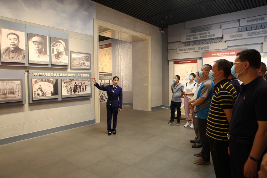 在扶眉战役烈士纪念碑前,党员代表向革命先烈敬献花篮,所有党员向烈士默哀致敬,共同缅怀革命先烈。在党旗的见证下,每一位党员郑重重温入党誓词。随后,大家参观扶眉战役纪念馆,在讲解员声情并茂的讲解下,通过一幅幅生动图文和一件件详实珍贵实物资料,参观了“审时度势,运筹帷幄”“诱敌深入,决战扶眉”“军民齐心,踊跃支前”等展区,听取了扶眉战役的历史背景、战略部署和战术方针,了解了当年战役的艰苦历程,回顾了人民解放军浴血战场的英勇事迹。最后,大家参观烈士陵园,瞻仰烈士生平事迹,重温我党红色记忆,追寻先辈光辉足迹。