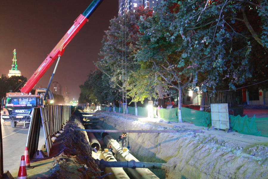 挑灯夜战抢进度 争分夺秒赶工期——公司大庆路供热管网工程持续稳步推进