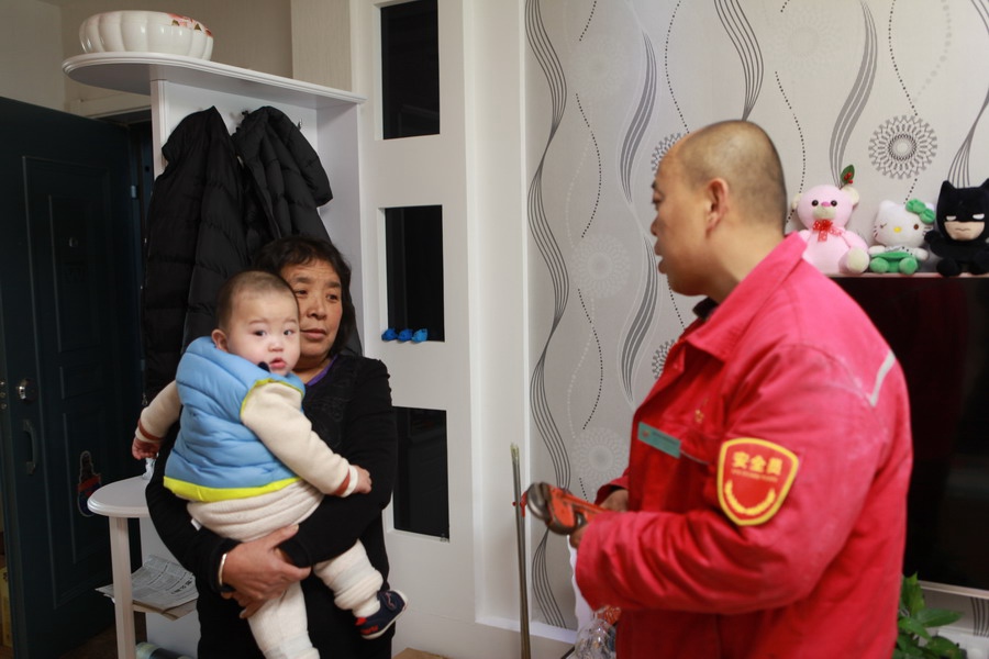 董恩琪告诉笔者,现在供热运行逐渐趋于平稳,报修问题大都是过滤网堵塞和气堵的一些小问题,但只要用户打电话报修,就及时上门维修。忙碌了一上午,回到办公点,他们端起水杯喝了口水,又接到维修电话,背起工具包,两人又出门了 ……