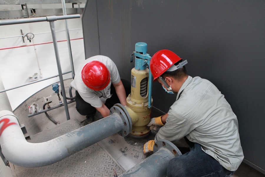 近日,笔者在左岸新城燃气热源看到,工作人员正在 2#炉顶拆卸锅炉安全阀。检修人员介绍说,安全阀是自动泄压报警装置,锅炉运行异常时能自动排汽泄压并发出警报,对锅炉内部压力的控制和安全保护至关重要。根据《特种设备安全生产法》相关要求,每年须送往质量检测部门校验。“别看这些安全阀体积小,分量可不轻呢!光是安全阀上的16套螺栓,就得拆半个小时左右”,检修人员说。