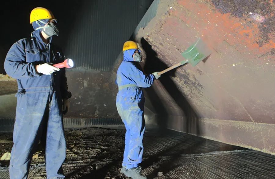 而在逼仄锅炉受热面后部的灰室里,两名工作人员也正在进行清灰工作,运行了四个多月的旗式受热面里,堆满了燃烧留存下来的灰堆,细小的煤灰滞留在空气中,呛得人直打喷嚏,他们沾满煤灰的脸上不断地流淌着滚豆的汗珠,加上防尘面罩裹在脸上,衣服又不透气,如同蒸桑拿一般,这项工作的难度可想而知。