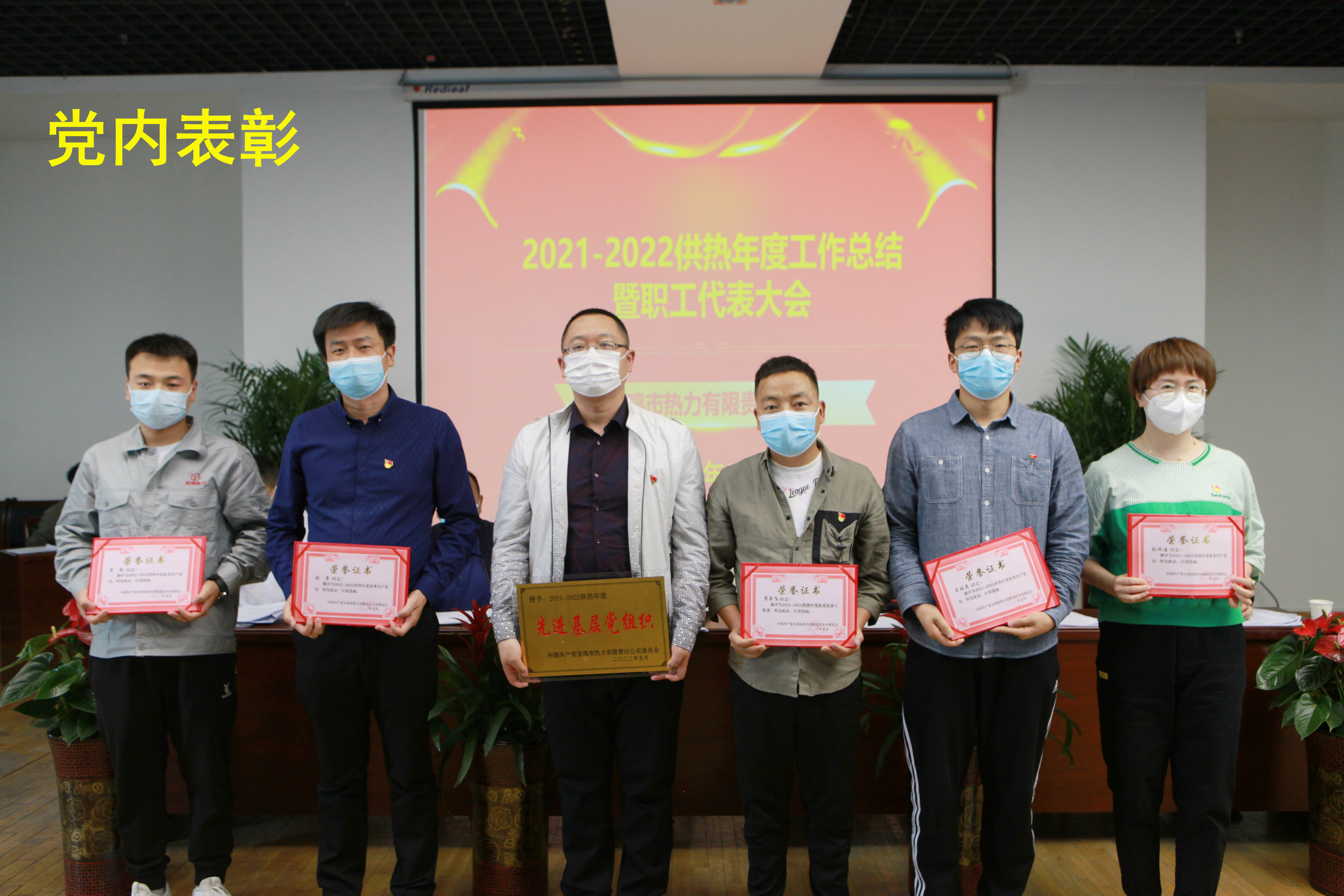 会前 以同步 VCR形式回顾了公司一年来重点工作和特色亮点。首先,副总经理张小波作了2021-2022 供热年度工作总结;工会主席张鸿斌向大会通报年度会费收支、 “三大协议”表决结果、提案回复等情况,并作2021年度工会工作报告;党委书记曹渊、副总经理高勇分别宣读了2021年度党政工先进表彰文件,并进行现场颁奖。