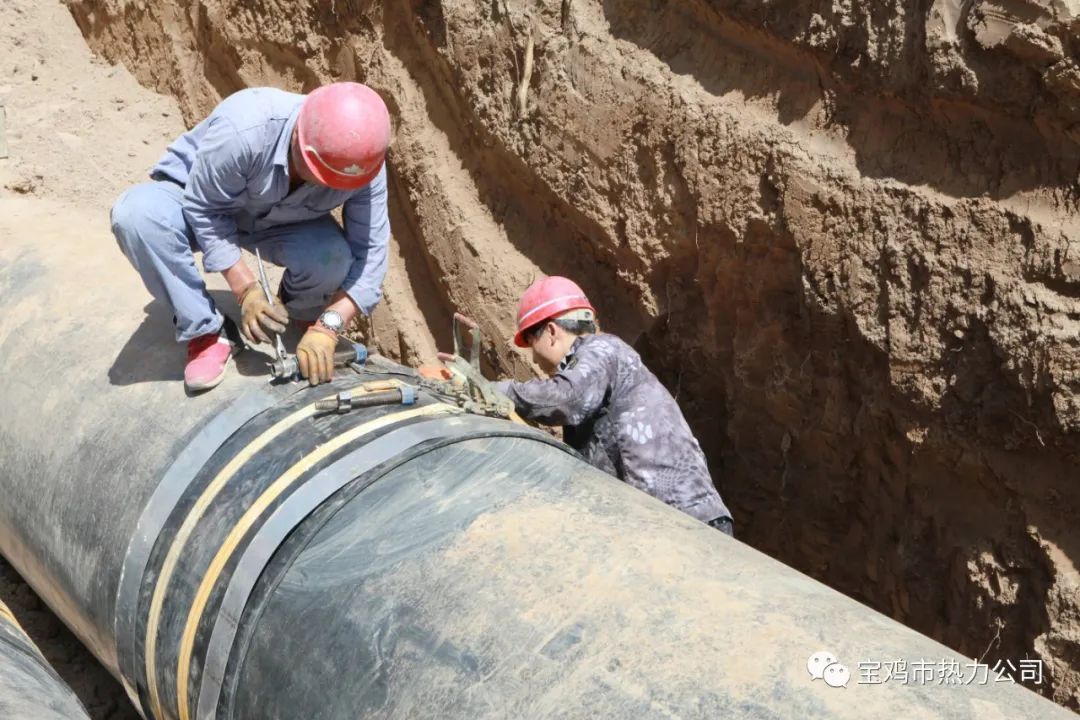 6 月 1 日上午,笔者在施工现场看到,大型设备吊运管道,工人们忙碌在各自作业面,或对口,或打磨,或焊接,或对完成安装的管道进行保温补口、铺砂回填,整个现场规范有序,作业有条不紊 …… 工程建设部经理高海峰介绍说,该项目西起合兴路(宝光路东段),向东沿渭滨大道敷设至石鼓西路,与石鼓西路主管网连接,并持续向东,敷设至张庙路东(连霍高速涵洞口),设计管径 DN1000 。项目完工后,将提升龙山热源向北输送能力,进一步强化金台大道沿线区域供热质量,同时满足公司未来供热规划需求。