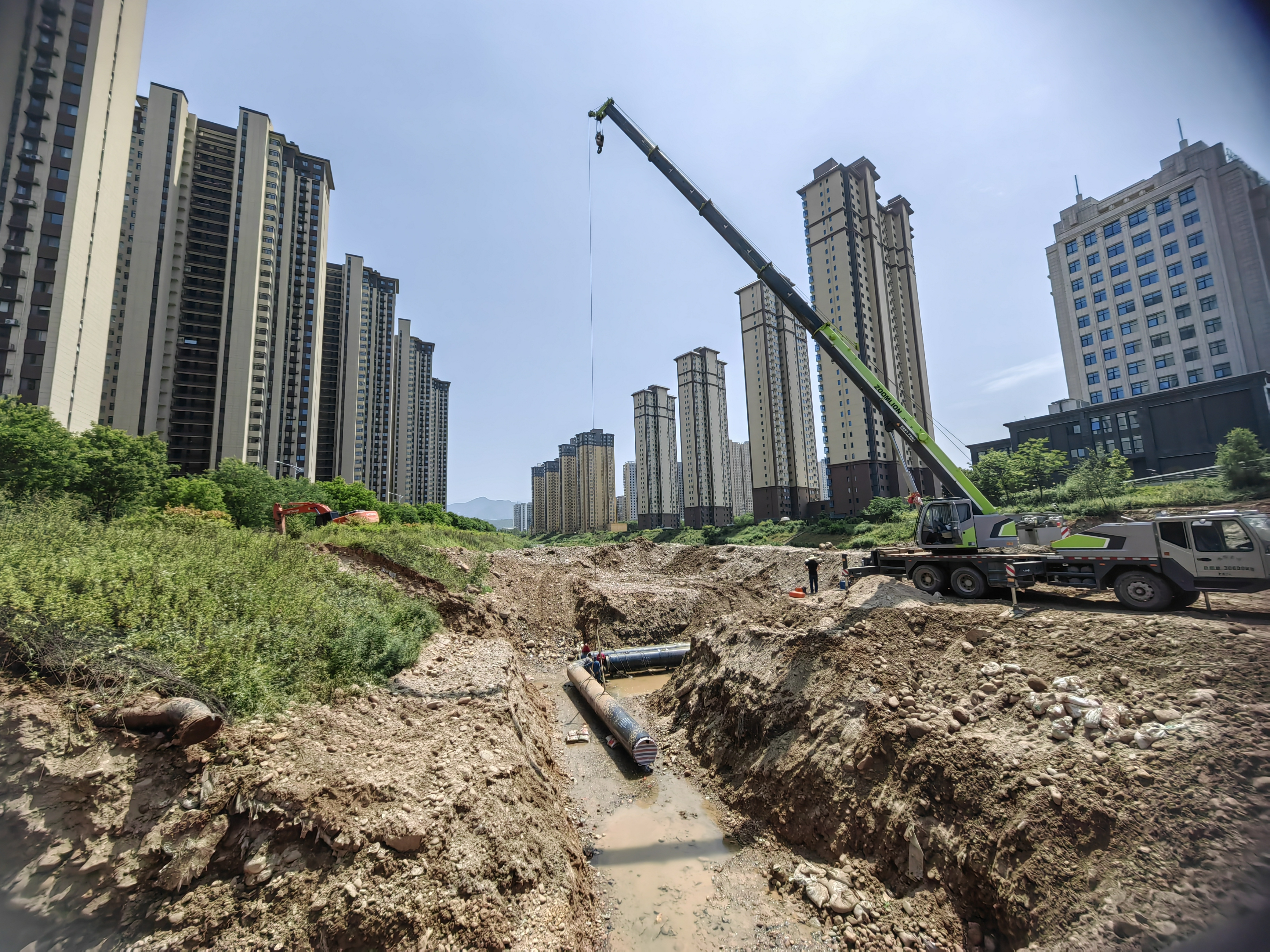 为切实解决这一问题,今年,公司以 “三个年”活动为抓手,锚定“推进项目高质量建设、提升供热保障能力”这一目标,按照防洪评价要求,实施该段管网改造工程,拆除河道内原有DN600管道,在原管位南侧8m位置重新敷设DN800管道127米。项目完工后,将有力提升管网输送能力、保障供热运行安全,同时还将满足公司后期供热规划需求。